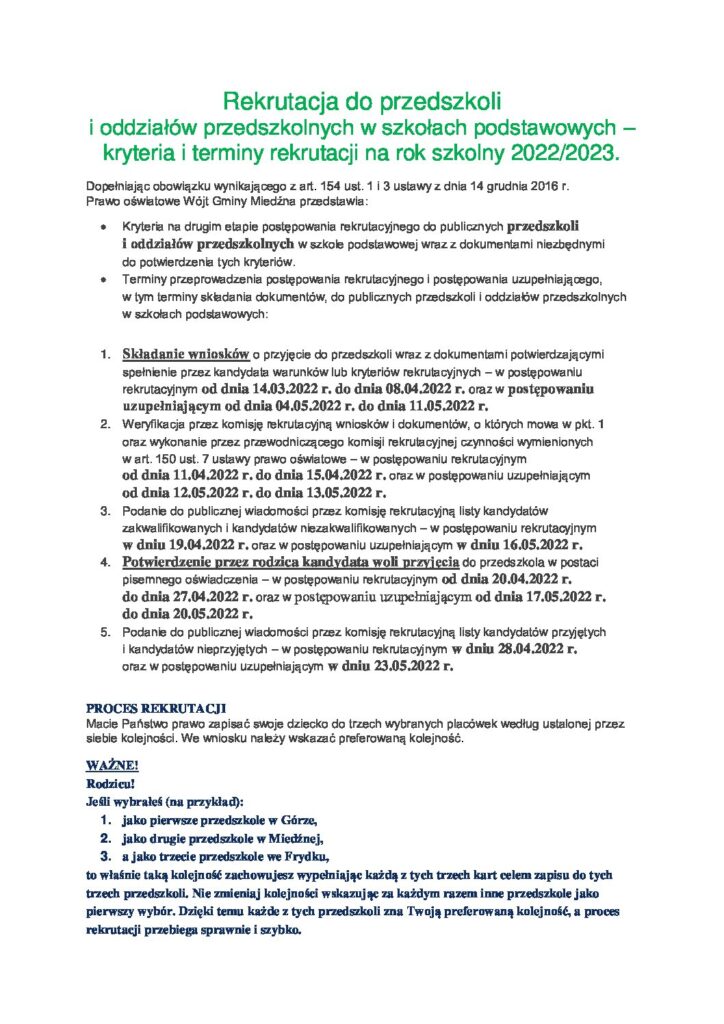 DYŻUR WAKACYJNY W PRZEDSZKOLACH W GMINIE MIEDŹNA W ROKU SZKOLNYM 2024/2025