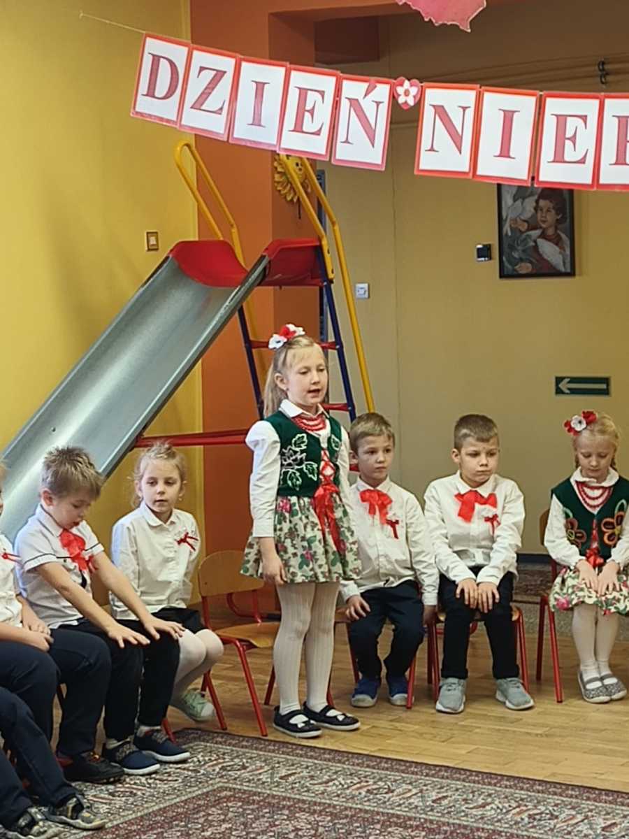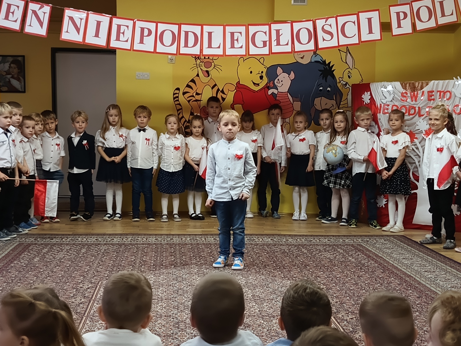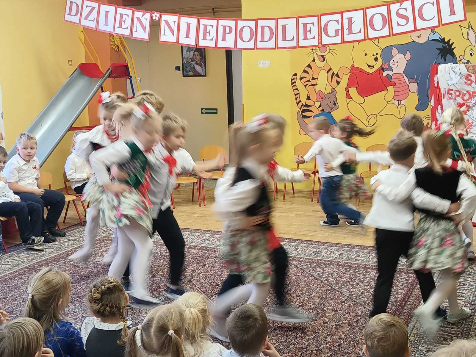 8 listopada odbyła się uroczysta akademia z okazji zbliżającego się Narodowego Święta Niepodległości. Przedszkolaki w odświętnych strojach zaprezentowały program artystyczny o naszej Ojczyźnie – Polsce. Były wiersze o barwach ojczystych, piosenki o Polsce oraz tańce ludowe.