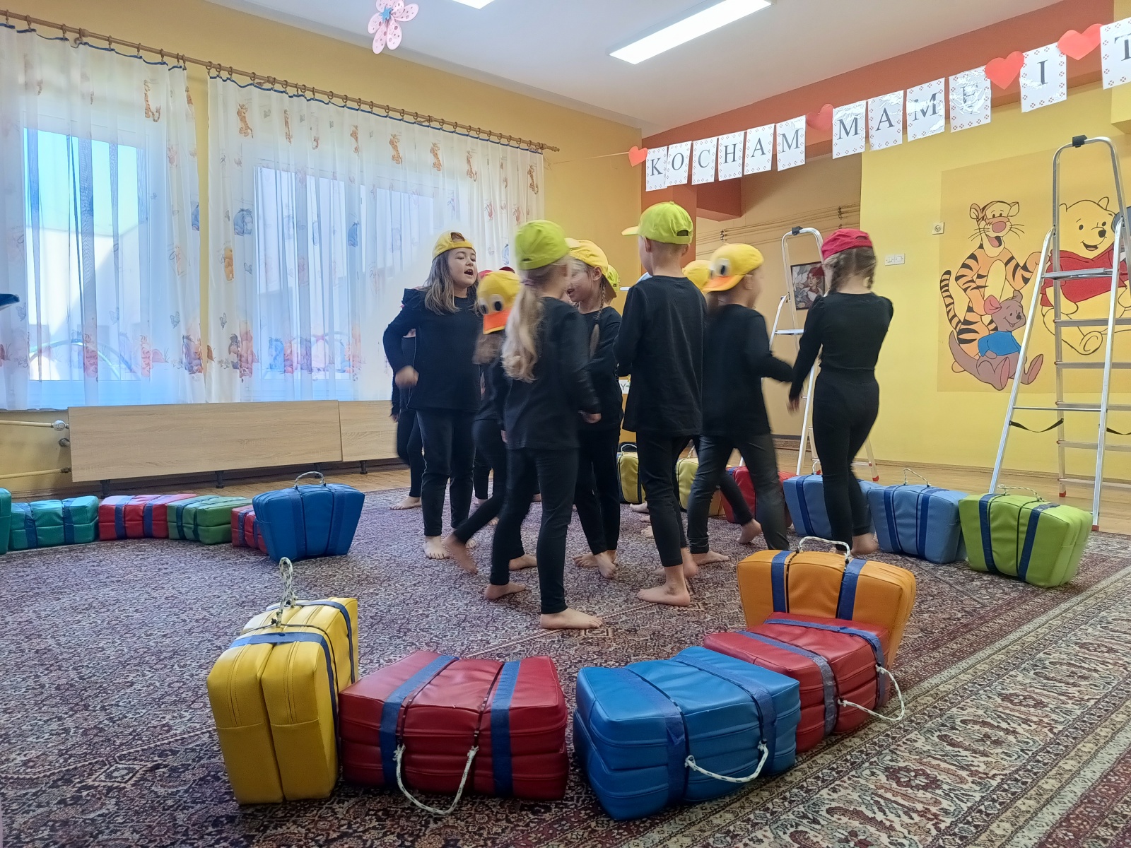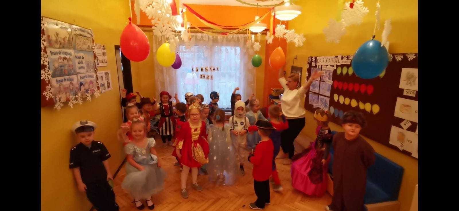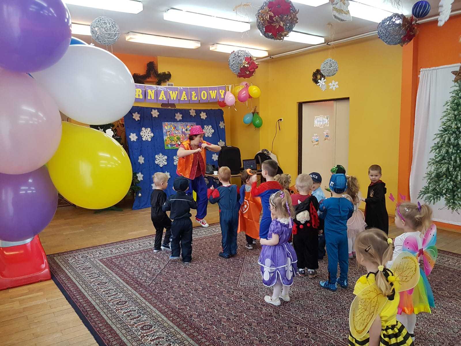W piątek 31 stycznia odbył się bal karnawałowy. Zgodnie z tradycją wielkich zabaw karnawałowych, wszystkie dzieci przybyły na bal w bajkowych przebraniach. Przy dźwiękach muzyki dzieci prezentowały swoje stroje i tańczyły przy wesołej muzyce. Na koniec przedszkolaki, zmęczone pląsami, rozjechały się w „pociągach”