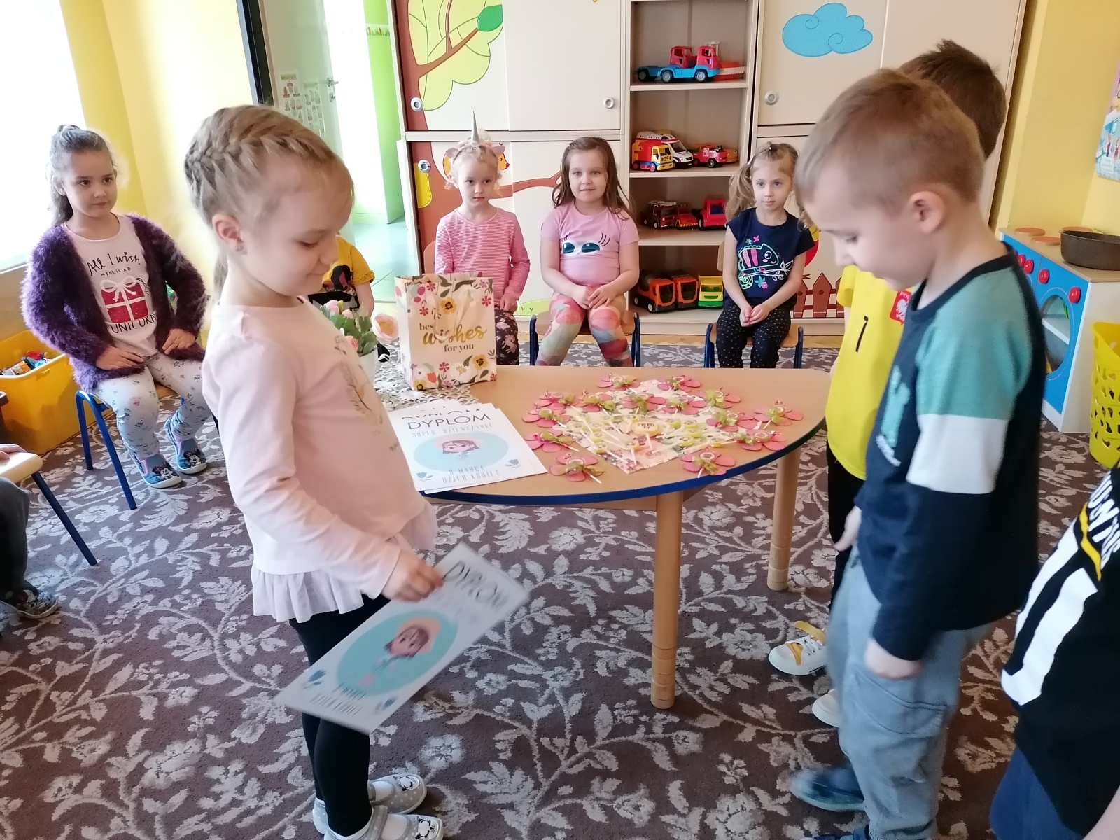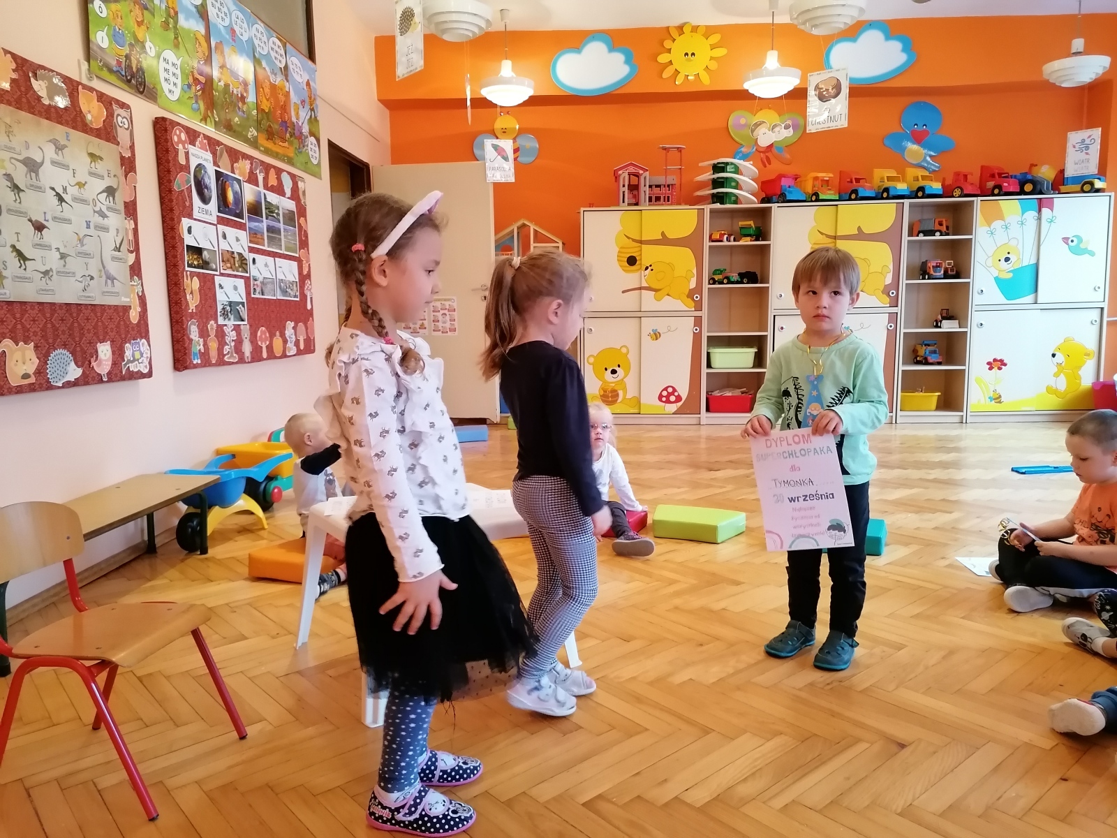 Tym razem w pełnym reżimie sanitarnym – dzieci z poszczególnych grup bawiły się oddzielnie. Podczas uroczystości został rozstrzygnięty rodzinny konkurs plastyczny nt. „Kartka urodzinowa dla Kubusia Puchatka”. Dzieciom, które wzięły w nim udział wręczono dyplomy i nagrody. To był naprawdę wyjątkowy dzień!