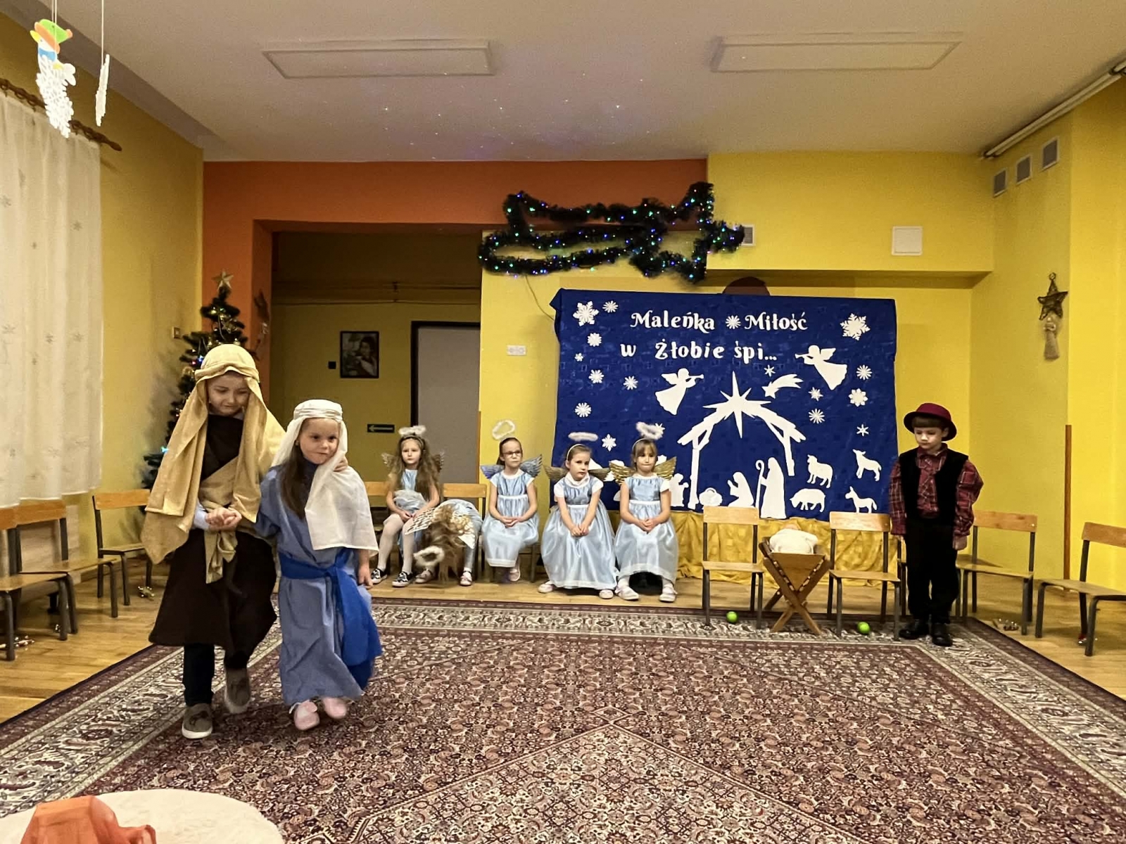 na które zaprosiły swoich rodziców i rodzeństwo. W specjalnie przygotowanych strojach oraz w pięknej scenografii, mali aktorzy przedstawili sceny narodzin Chrystusa.