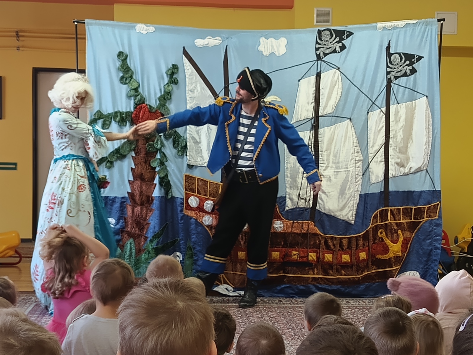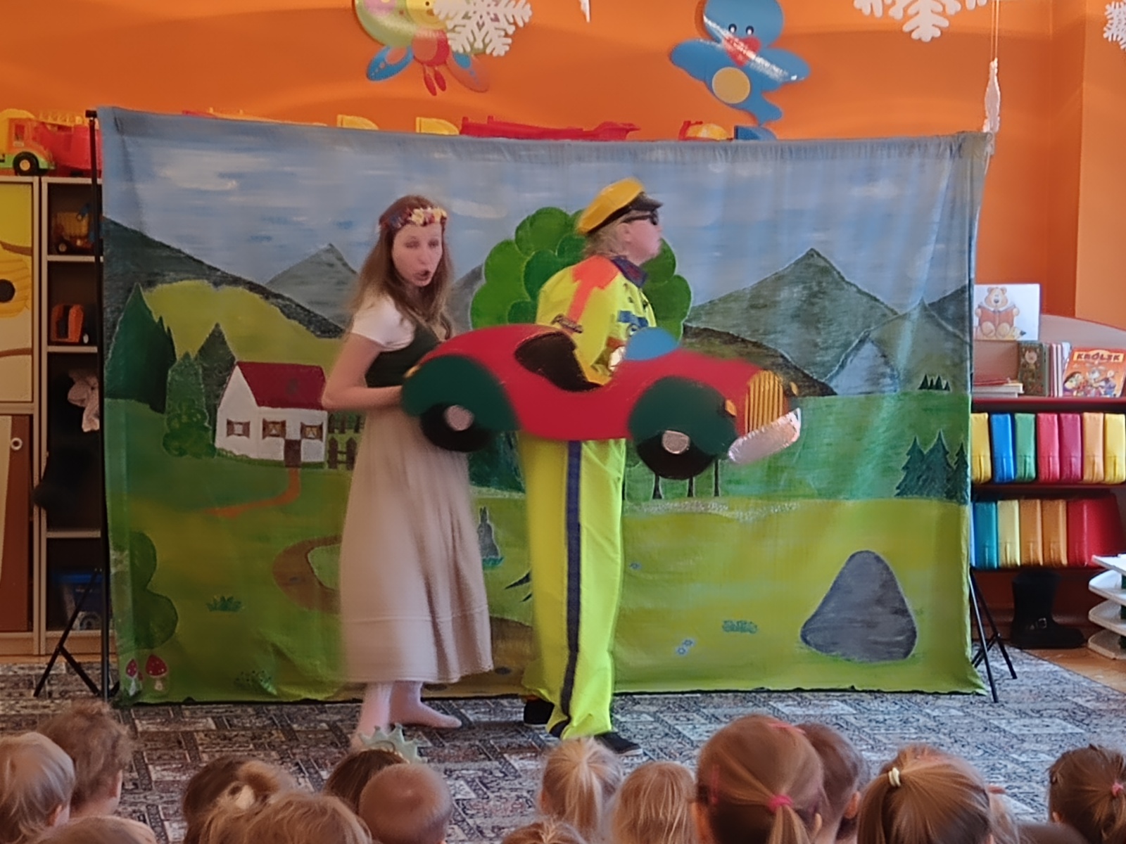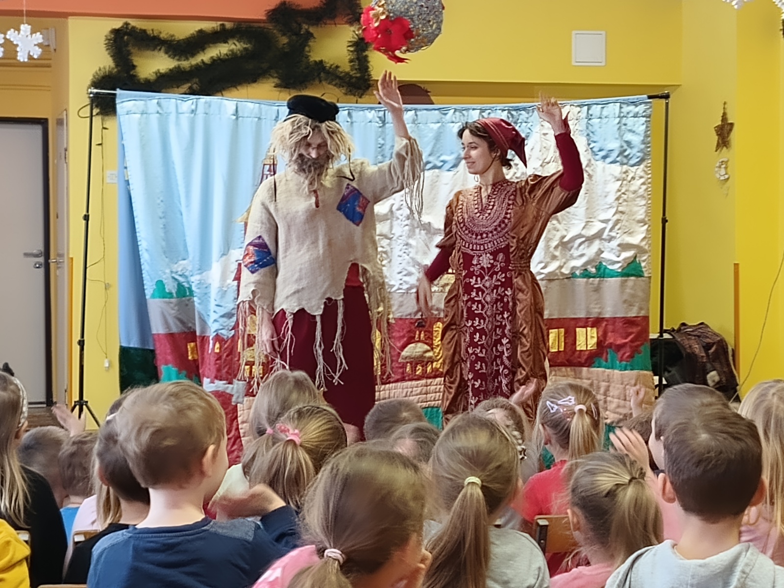 W piątek 22 listopada gościliśmy teatrzyk „Skrzat” z Krakowa z przedstawieniem pt. „Cztery mile za piec”. Tym razem dzieci brały aktywnie udział w przedstawieniu wcielając się w role gąsek i jaworowych ludzików oraz śpiewając z aktorami wesołe piosenki.