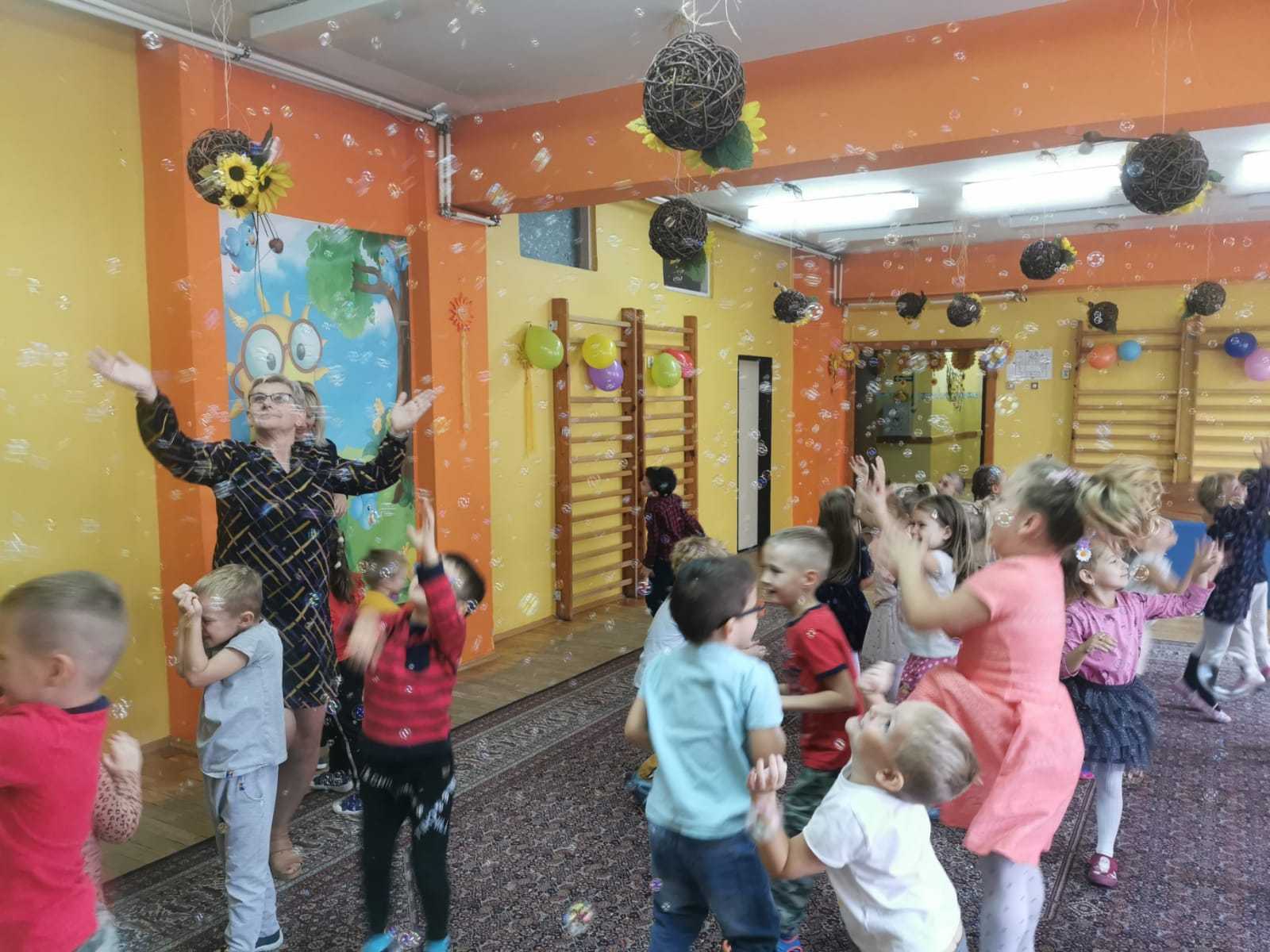 i bańkach mydlanych, a także pałaszowanie słodyczy ofiarowanych dzieciom przez Panią Dyrektor Zespołu i Wychowania Marzenę Mandla. Zabawy i radości było co niemiara, dlatego też wszystkie dzieci zaprosiły Kubusia Puchatka do wspólnego świętowania w przyszłym roku.