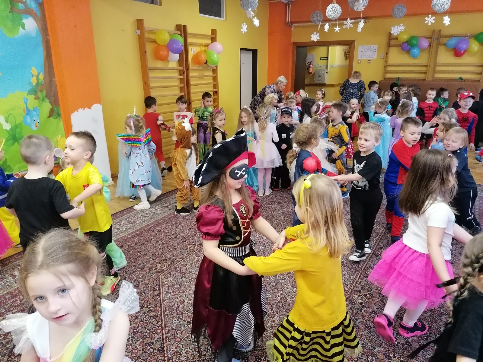W piątek 31 stycznia odbył się bal karnawałowy. Zgodnie z tradycją wielkich zabaw karnawałowych, wszystkie dzieci przybyły na bal w bajkowych przebraniach. Przy dźwiękach muzyki dzieci prezentowały swoje stroje i tańczyły przy wesołej muzyce. Na koniec przedszkolaki, zmęczone pląsami, rozjechały się w „pociągach”