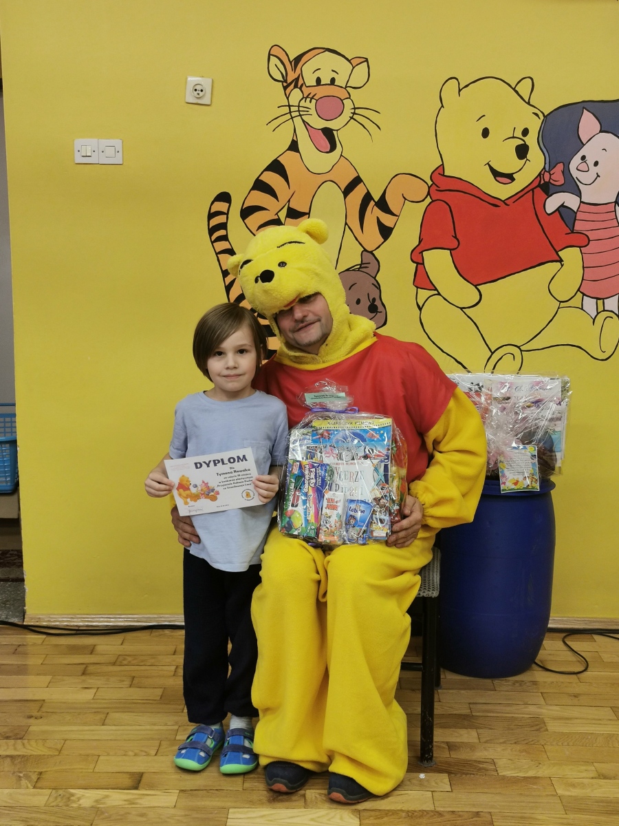Tym razem w pełnym reżimie sanitarnym – dzieci z poszczególnych grup bawiły się oddzielnie. Podczas uroczystości został rozstrzygnięty rodzinny konkurs plastyczny nt. „Kartka urodzinowa dla Kubusia Puchatka”. Dzieciom, które wzięły w nim udział wręczono dyplomy i nagrody. To był naprawdę wyjątkowy dzień!