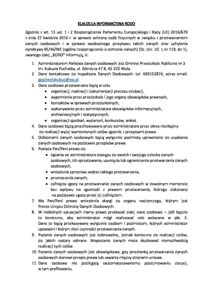 POLITYKA BEZPIECZEŃSTWA PRZETWARZANIA DANYCH OSOBOWYCH